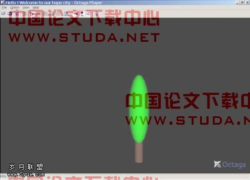 很显然,城市里只有楼房和街道是不够的,一定要有树,那是反映一个称呼司绿化程度和建设特色的标志,而树则不是简单的立方体,但为了构造的简便,本人用圆柱体和球体来构造树,只要将球体在竖直方向上拉伸,在水平方向上压缩,然后将这个改造过的形体放在圆柱体上就形成了一棵树。当把树嵌入到城市模型中,景致就完全不一样了。这就是城市的整体构造。