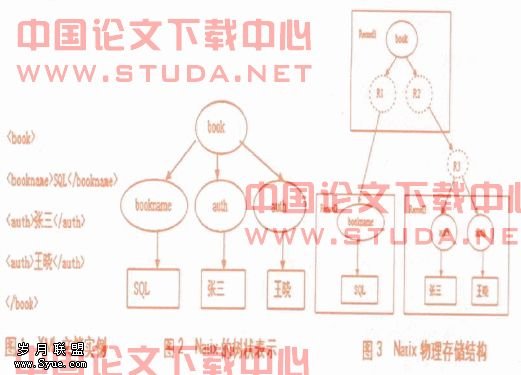 XML数据是一棵由各种节点组成的树,常见的节点包括元素(Element)节点、属性(Attribute)节点和文本(Text)节点。但是NXD中,一条记录所对应的子树有多大、包含多少个什么样的节点,这是NXD的存储粒度问题。记录的粒度分为三种:(1)结点级:一个结点就是一条记录。(2)子树级:XML文档的一个片段(一个子树)对应一个记录。目前,有两种划分子树的方法:①根据物理块大小,使子树的大小与物理块大小相近,不需要文档模式信息的支持;②根据逻辑意义划分子树,使子树成为一个比较完整的逻辑单位,需要文档模式信息的支持。(3)文档级:一个XML文档是一条记录,文档是作为一个整体来操作的,不需要有DTD或XMLSchema等模式信息的支持。
