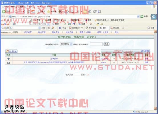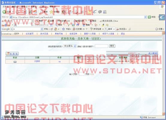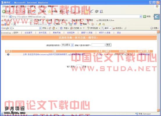 用户可以在此浏览帖子的主题信息。通过单击主题信息的连接,可以进入此贴的主题的内容和浏览此贴的详细内容。