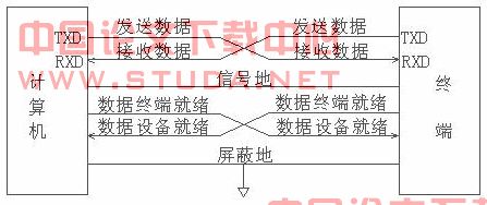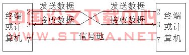 在最简单的全双工系统中,公用发送数据、接收数据和信号地三根即可。对MCS-51单片机来说,利用RXD(串行数据接收端)线、TXD(串行数据发送端)线以及一根地线,就可以构成符合RS-232C接口标准的全双工串行通信口。(见图b)