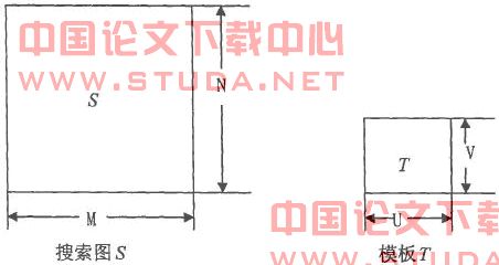 设搜索图为s待配准模板为T,如图3.1所示,S大小为M N,T大小为U V,如图所示。