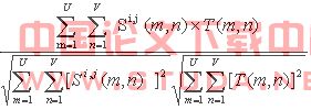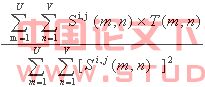 式中等号右边第三项表示模板总能量,是一常数,与(i,j)无关;第一项是与模板匹配区域的能量,它随((i,j)的改变而改变,当T和S 匹配时的取最大值。因此相