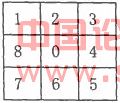 所谓均值滤波实际上就是用均值替代原图像中的各个像素值。均值滤波的方法是,对将处理的当前像素,选择一个模板,该模板为其邻近的若干像素组成,用模板中像素的均值来替代原像素的值。如图2.4所示,序号为0是当前像素,序号为1至8是邻近像素。求模板中所有像素的均值,再把该均值赋予当前像素点((x, y),作为处理后图像在该点上的灰度g(x,y),即