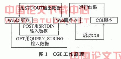 CGI主要功能是在Web环境下,将WWW与Web数据库集成在一起,顺利地实现了动态Web页面查询。从用户端浏览器传递一些指令或参数给Web服务器,CGI 脚本通过标准输入STDIN获得输入信息,最后使用STDOUT输出HTML形式的结果文件,经Web服务器送回浏览器显示给用户。由于用户能传递不同的参数给CGI 脚本,所以CGI技术使得浏览器和服务器之间具有很强交互性。?