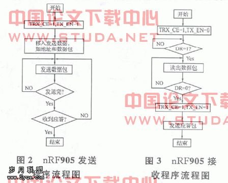 (5)当TRX_CE被设置为低时,nRF905结束数据传输并将自己设置成待机模式。发送程序流程图如图2所示。?