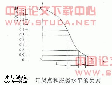 在本系统中,对于每一种物资都设定有一个安全库存,安全库存的数值由企业通过对数据的分析综合企业想要达到的服务水平得出。取提前期内需求DL不超过订货点RL的概率作为服务水平:SL=p(DL≤RL)。服务水平越高,安全库存量越大,所花的代价也越大,但服务水平过低又将失去顾客,减少利润。订货点和服务水平的关系见图7。?