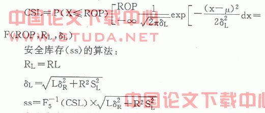 库存服务水平(CSL)的算法:(其中:L:提前期的平均长度;SL:提前期的标准差,用来衡量提前期的平均偏差程度;R:每个需求周期的平均市场需求量δR:每个周期市场需求的标准差;RL:订货提前期内的平均需求量δL:订货提前期内需求的标准差)?