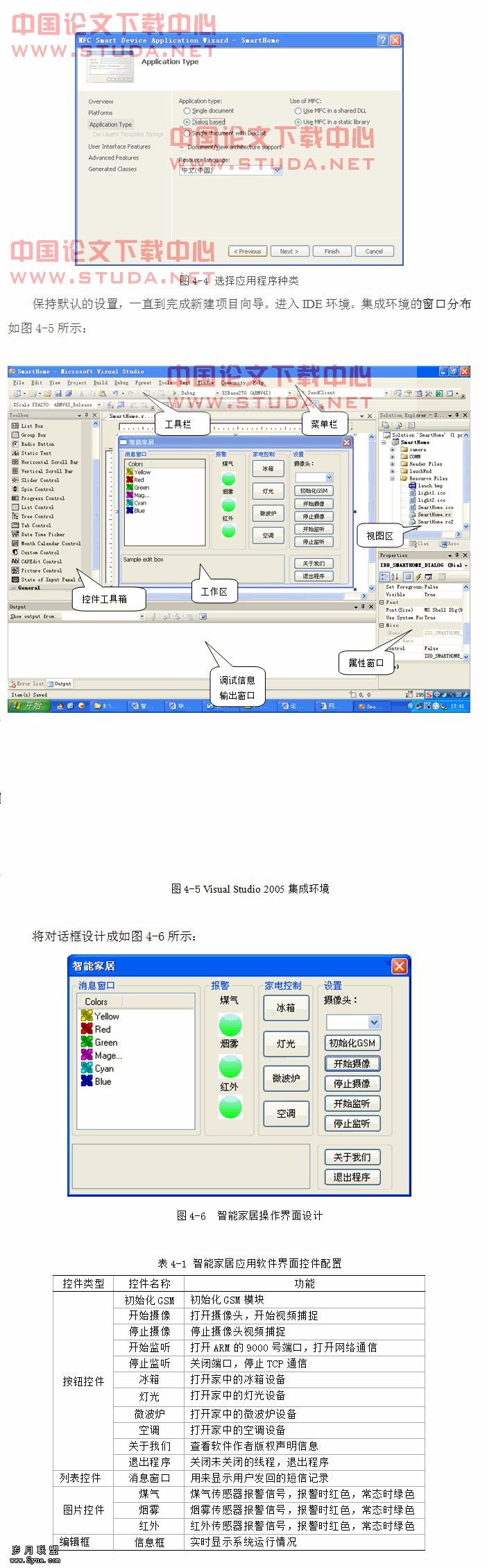 智能家居系统的应用程序采用Visual Studio 2005进行开发。Visual Studio是微软公司开发的Windows平台上的应用程序开发环境。Visual Studio可以创建Windows 下的Windows应用程序和应用程序,也可以用来创建网络服务、智能设备应用程序和Office插件[5]。Visual Studio 2005面向.net框架(2.0版本),同时可以开发跨平台的应用程序。