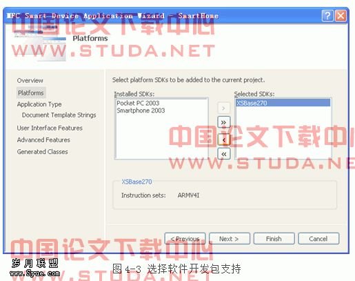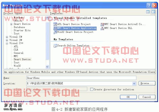 打开Visual Studio 2005,创建一个基于MFC Smart Device Application的VC++程序。如图4-2所示: