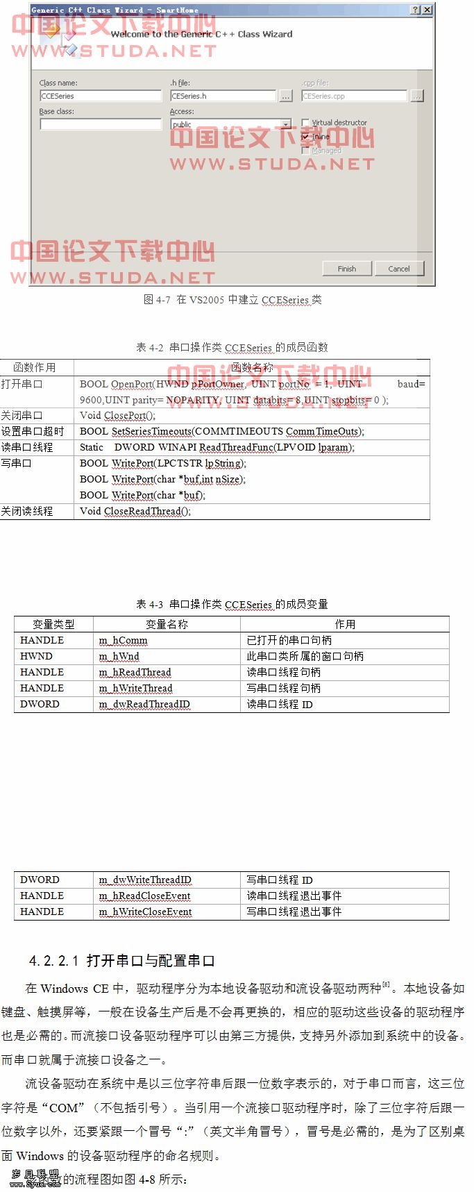 串口通信协议采用CCESeries类实现,通过对此类的成员函数的调用,完成对串口的初始化、读写操作等,在不用串口的情况下,还可以关闭串口。