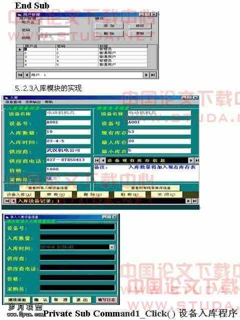 Private Sub Command1_Click( )设备出库程序