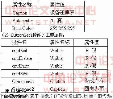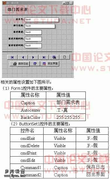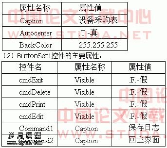 添加2个命令按钮“保存日志”和“回主界面”。设置表单中控件的属性。下面的表列出了需要修改的控件的名称以及属性值。