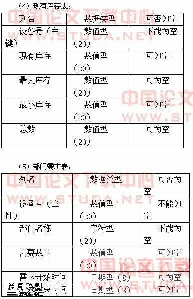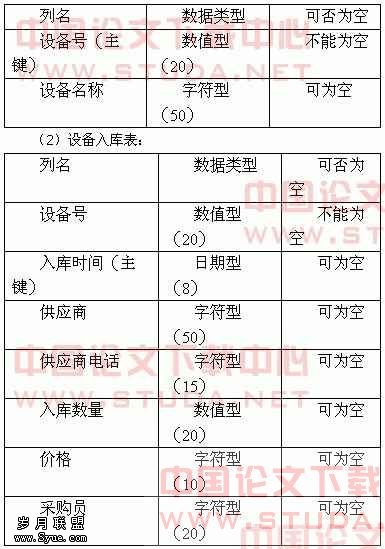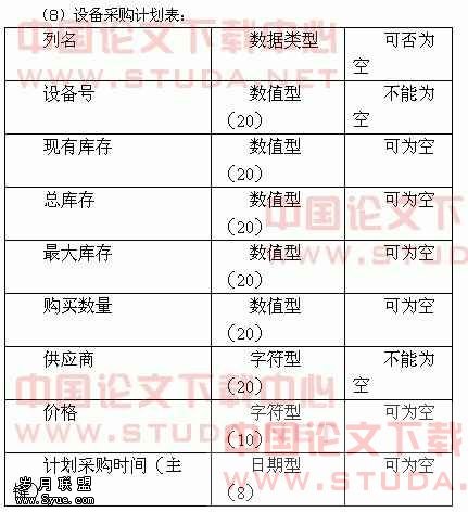 ● 设备需求信息。包括的数据项有需求的部门、需求设备、需求数目、需求时间等。