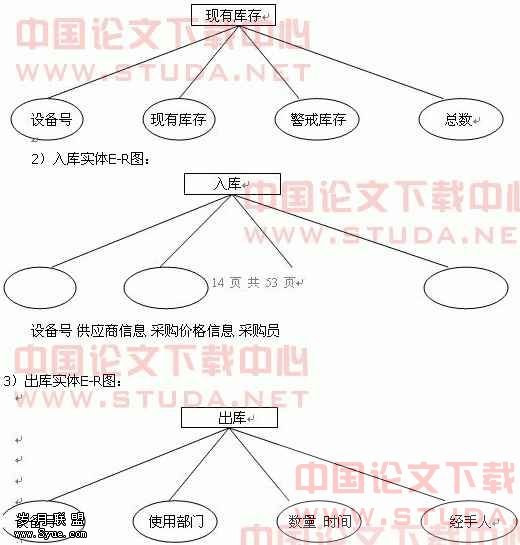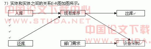 本设计根据上面的设计规划出的实体有库存实体、入库实体、出库实体、采购实体、还库实体、需求实体。各个实体的E-R图及其关系描述如下: