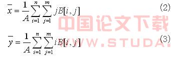 ,he为双眼模板的高度,we为双眼模板的宽度。在不同的图像中,由于光照方向的不同,有可能使某一方向上的亮度稍大,导致灰度值偏高,因此一般只要求p(x,y)的值小于相邻的六个或六个以上的像素块的灰度值,就可以把它认为是可能的眼睛像素块。此时将输入图像二值化,可能的眼睛块区域值为1,其余区域值为0。 对得到的可能像素块,利用人脸器官分布的一些先验知识来进一步判定得到真正可能是眼睛的像素块。 (1)如果由可能的眼睛像素组成的图像块过大或过小,即由眼睛像素块组成的矩形高度大于2he,小于0.5he;或者宽度大于0.7we,小于0.15 we。这些图像块就不可能为眼睛块,因此这些相连像素被剔除。 (2)在眼睛区域中,其上下眼睑、瞳孔的灰度值相对比眼睛的其它区域低,这样通过像素块灰度值比较后,有一些眼睛附近的像素没有标记为可能的眼睛像素。因此如果一个像素周围有足够多的可能眼睛像素,则这个像素也被标记为可能眼睛像素。 (3)一般来说,人眼的长度与宽度的比值大约为0.5左右,利用这个条件,我们可以进一步剔除长宽比过大的图像块。 (4)人的两眼中心的连线的距离在0.5we 到we之间,且对于人的两眼连线来说,相对于水平方向的旋转角度在45°到135°之间。根据这两个条件,可以进一步得到可能的眼睛块。 两个可能眼睛块中心连线的距离通过计算它们中心的距离得到,对于一块可能的眼睛区域来说,可以看作是一个凸多边形,因此可以求出其质心。对于二进制图像,可以将其面积的中心看作是质心。其质心可由下式得到:
