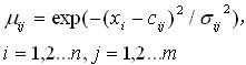 表示函数的宽度,m表示模糊规则的数目。在FNN中参数c、