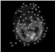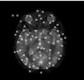 在这一部分我们使用本文提出的配准方法,对CT和PET不同设备采集的图像做刚性配准.以CT 图像为配准图像(refernce image),以PET图像为可变动配准图像(floating image)。结合Harris角点和互信息技术,使用改进的遗传算法做配准实验。 图2、图3分别是提取了Harris角点后的CT图和PET图。我们应用角点特征的互信息结合遗传算法,最佳配准参数(旋转角度α,和平移参数x,y)。