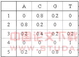 隐马尔科夫模型HMM是由马尔科夫链扩充而来的一种随机模型。HMM可以被理解为一个双重随机过程,一个是不可观察的(隐含的)状态变化序列,另一个是由该不可观察的状态产生的可观察符号序列。隐马尔科夫模型形式描述如下:一个HMM模型是一个三元组M=(A,S,Q),其中A是字母表,S是有限状态集合,每个状态可以释放字母表中的字符。Q为概率集合,包括两个部分:一是状态转换概率fkl,k,l∈S,表示从状态k转化到状态l的概率;二是字符释放概率,记为ek(b) (k∈S,b∈A),表示在状态k下释放出字符b的概率。令路径Π=(π1,π2,…,πL )是模型M的一个相继状态序列,X=(x1,x2,…,xL)是一个字符序列,按下述方式定义状态转换概率和字符释放概率:fkl = p(πi = l|πi-1 = k)ek(b) = p(xi=b|πi= k) 对于给定的路径Π,可以按下面的公式计算出产生序列X的概率: P(X|Π)= fπ0,π1 eπi (xi)fπi,πi+1 这里,令π0为起始状态,πi+1为终止状态。 在表示或分析HMM模型时,用方框表示各个状态,方框之间的连线表示状态转换。对于每个状态,详细地描述各个字符的释放概率,而对于状态之间的转换,也给出相应转换动作发生的概率,即状态转换概率。表示DNA序列的HMM如图1所示。 对生物序列而言,HMM的字符就是20个字母的氨基酸或4个字母的核苷酸。编码蛋白质的原始DNA序列,在生物的进化过程中会受到环境和各种因素的影响,使翻译出的蛋白质序列[4]经历突变、遗失或引入外援序列等变化,最后按不同的进化路径分化,形成多种功能相近的蛋白质。因此,可以把这些蛋白质看作由一个基本蛋白质序列经过插入、删除或替换了某些氨基酸残基而形成。这个过程可以用HMM来表示。一个训练好的模型可以代表有共同特征的蛋白质序列。HMM用于分析蛋白质序列的原理是分析蛋白质产生不同序列的概率,对于与模型相符合的序列,能以较大的概率产生。