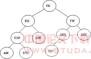 按照二叉排序树的原理,根据COMMODITYTREE表中COMMODITYPY(商品名称首字母)字段的信息将COMMODITYTREE表中的FatherInfo字段和SonInfo字段补充完整,过程如下:①将第一条记录设为根节点,其Father Info字段和Son Info字段内容均为NULL,即为根节点;②根据各记录的COMMODITYPY字段信息与根结点信息比较,形成如下二叉排序树结构,见图1。