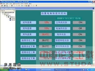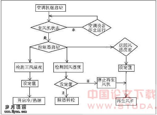 在电池除湿间温湿度控制项目中一些技术要求与其它恒温恒湿项目不同,湿度值要求非常低,仅用制冷除湿是远远达不到的,所以要用到专用设备――除湿机。 除湿间要求是恒温恒湿,湿度要求10%~15%,这个湿度值的要求与其他净化厂房、净化车间、药厂的空调差别很大。但应用了专业的除湿设备后,仅仅给控制一个开关点,通过调节PID和再生风机等连锁控制就完全达到电池的生产要求。再生风机和除湿机的相互连锁控制需要专业的空调技术人员提出要求。制定控制方案时,如果没有考虑到湿度差和再生风机的矛盾之处,将导致湿度低于设定值,可能损坏除湿转轮。因再生风机和再生电加热连锁,如果转轮不转,电加热只加热局部,后果严重。通过控制器输出外部接线连接输入给再生风机一个优先停的信号,使再生风机与除湿转轮相互连锁,协调工作,完成湿度控制。[1] 龙庆华.智能室温计算机自动监控系统,[J].华南师范大学学报,2002(1):5-8[2] 王常力,罗安.集散型控制系统的选型与应用,[M].北京:清华大学出版社,1996.6[3] 徐爱均.智能化测量控制仪表原理与设计,[M].北京:清华大学出版社,1996.6[4] 黄智伟.无线数字温度传感器的设计,[J].传感器技术,2002,21(9):31~33[5] 郑春生等.计算机连续实时温度采集系统的研究.铸造技术,2003.024(003),193-194[6] 王顺晃,舒迪前编著.智能控制系统应用,机械出版社,1995[7] Michael R.Tennefoss .《提供开放的、互操作的楼宇控制系统》,2005[8] 西门子()有限公司自动化与驱动集团.《SIMATIC PCS 7–全集成自动化理念中的过程控制系统》,2006上一篇:一种自适应阈值的角点检测算法