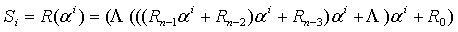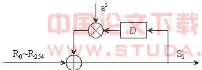 3.5.1伴随式的实现 伴随式计算电路结构如图4所示。图4中R0~R254为译码输入。为了节省硬件资源,同时考虑到每个伴随式系数在计算上相互没有关系,故采用串行计算得到Si。具体做法为:首先将译码输入R0~R254写入到一个片内RAM,每计算一个伴随式,将其从RAM中串行读出,并进行迭代运算。