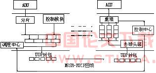 ADU传到MSSR-RTP层,会首先进行分片处理,然后由控制模块加上MSSR-RTP报头,由调度策略进行数据发送,发送的数据依据其所在流的重传时间决定发送后是否放入缓存。如果重传时间不为0,发送后将缓存,如果重传时间为0,则发送后就丢弃。缓存的数据依据MSSR-RTCP回馈进行重传和移除。其数据传输示意图如下: