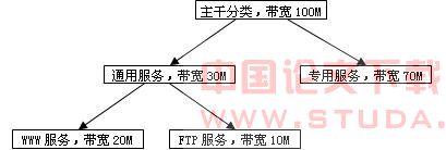 在一个队列上必须有一个主干分类,它拥有全部的带宽。在主干分类上可创建多个分类,每个分类可以再创建它们的子类,以此类推,但是每一个子类只能有一个父类。它们的主要作用是将数据流依据各种条件进行分类,便于对它们进行控制。针对各个不同的网络接口可创建相同的分类,但是同一个接口上的分类不能相同。每个分类都分配了一定的带宽值,属于同一个父类的所有子类的带宽总和不能超过父类的带宽值。分类就好像是为数据包建立了几条通道,而数据包的流向则由过滤规则来决定。2.1.3过滤规则