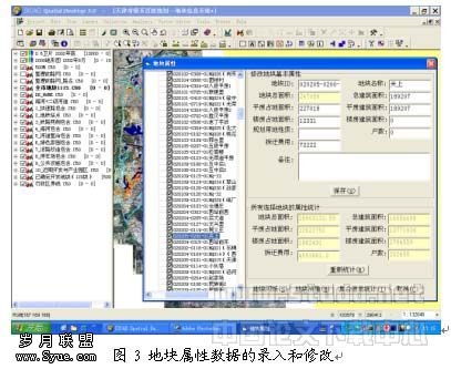 第三、“情系百姓”项目的规划范围非常广泛,涉及到天津市外环线内十个行政区的1000 m2以上的地块583个(1000m2以下的2千多个地块未被纳入此次系统),数据量非常庞大。因此,如何录入、修改、查询和统计地块的属性信息,是我们面临的第三个问题。