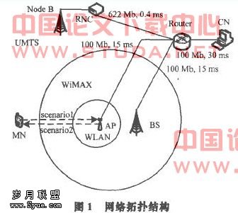 MN在由UMTS,WiMAX和WLAN3种部署的环境中移动,如图1所示,
