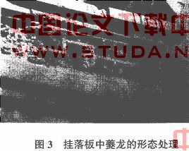 天津砖雕尽管运用了具象的表现手法,但却始终含有韵律 、均衡 、对 比 、系统连贯一致的变化。在广泛吸纳文学 、绘画 、民俗等各类艺术精华为己所用的基础上 ,在创作实践中形成了自己独有的形式语言,其利用缜密繁缛的点 、线、面组合 ,使对称 、均衡反复等变化规律贯穿于砖雕之中。雕刻中特别突出线的组合作用 ,无论是平雕还是浮雕,构成大形的线或是散淡飘逸 ,或是线线相连,形成统一的力感。在雕刻技法上,都是娴熟理趣,游刃有余。例如图 3挂落板中的“夔龙”,以不同的曲、直线形连接花叶的面和点,形成统一的变化、动感和统一的韵律,并以凿刻技法使观赏效果更为玲珑剔透古韵典雅,代表了我国刻线艺术的韵味;门楼束腰“竹”的形态处理,使每一根线似乎都经过了精心梳理打扮,刻形精美圆浑,其点 、线、面参差生韵,表现出天津砖雕繁而有序,密而有形,特点完整的艺术效果,见图 3。