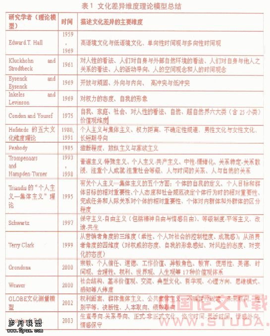 国际商务中文化差异维度理论模型综述