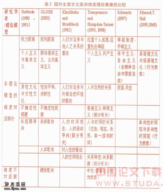 2.国外主要文化差异维度理论重叠性比较