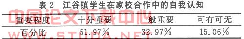 1.2.2 学生表面上主动,实际上最为被动:学生在家校合作中,既是桥梁,也是合作效果的承载者。多数家校合作的信息都是学校、教师通过学生向家长进行传输;家校合作的活动也是学校、教师在与家长的相互配合下作用于学生的。尽管调查中超过半数的学生(占51.97%)认为自己在家校合作中的作用十分重要(见表2),但实际上学生对于家校合作的方式、内容、评价等几乎没有发言权。显然,学生在家校合作中表面上主动,实际上是最为被动的一方。如此的合作现实,收不到预期的效果,对培养学生的主动性、主人翁精神也非常不利。