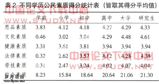 基础教育对公民素质提高的显示度研究