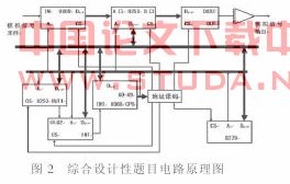 综合性实验的目的是要将学过的主要功能部件有机地组合起来,形成一个具有一定实际意义的整体,使学生掌握微机系统整合的基本方法。为此我们针对实验器提供的功能部件,设计了综合性实验题目,该题目将主要的实验功能模块综合为一个数据采集与处理系统。实验原理图如图2所示。