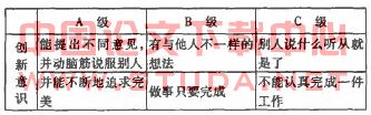 ①有简单的动手操作能力;②有一定的发散性思维或具有较好的学习思维品质;③有创造的欲望;④有创新的意识或表现出与其他儿童不一般的能力。上述指标每一组别都可以有等级水平的差异(A一C)。
