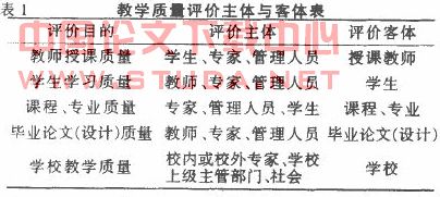教学质量是教与学相互联系、共同作用的结果,是一个难以精确定量的综合性指标。为了判断和衡量教学质童,并加以调整与控制,评价作为不可缺少的方法手段,在教学质量监控系统中具有重要的地位和作用。所谓评价是指评价主体根据一定评价目的和标准对评价客体的价值进行认识评定。内容包括评价主体与客体、评价指标及标准、评价理论和方法等。