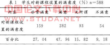课程设置分两类,即理论课和实践课。理论课教学内容主要包括:运动项目技术与战术理论知识、运动健身的基本原理与锻炼方法、运动损伤的预防与处理等方面。另外,教师可以将最近的体育信息和重大体育赛事直观地搬上讲台,及时传播给学生,充分发挥技术在教学中的作用。实践课全部以专项课形式进行。据现有的体育资源以及学生的兴趣,我们设置了篮球、排球、足球、乒乓球、散打、跆拳道等15个运动项目,形成了学生自主选择课程内容、任课教师和上课时间的“三自主”选课机制。调查表明,新的课程设置深受学生们的欢迎(见表1)。