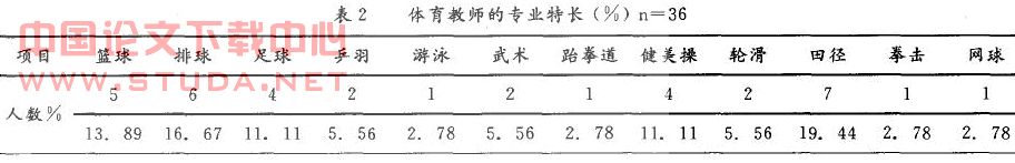 (3)体育教师职称结构。目前,我校体育教师具有教授职称的1人,占2.78;副教授有1O人,占27.78%;讲师有12人,占33.33%;讲师以下职称的有13人,占36.11%。从职称比例看,学校应鼓励体育教师努力进取,不断提高自身素质,尽快提高自身的教学与科研水平。