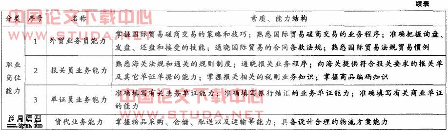 根据当前发展的需要。以及多种价值取向主体对高职人才培养的多元化要求,以就业为导向,本着“必需、够用”的原则。培养能够适应外贸行业第一线岗位(群)工作的应用型人才。