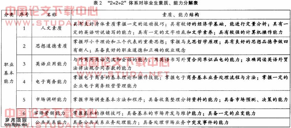 4.“2+2+2”体系对毕业生所应具备的各项素质、能力的要求