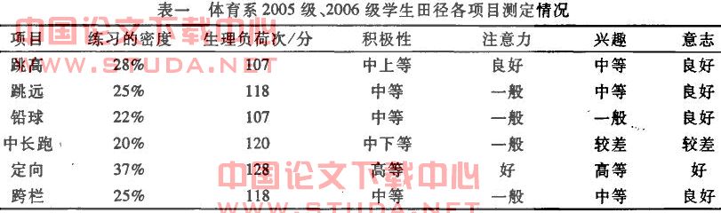 国家部颁布的《全国普通高等学校体育与健康课程教学指导纲要》明确提出,在体育教学中要坚持“健康第一”的指导思想,促进学生健康成长,激发学生运动兴趣,培养学生的终身体育意识,确保每个学生身心健康的。在学校体育改革的今天,我国高校学生的体质成下滑的趋势,这是我们每一个体育工作者面临的严峻问题。随着课程改革的不断深人,定向运动作为一种崭新的体育教学模式,已逐渐走进了高校的体育课程体系,对于促进学生整体素质的发展具有重要的意义。为此,本文对怀化学院2005级、2006级体育专业学生进行了调查,通过对田径教学中跳远、跳高、铅球、中长跑、校园定向、跨栏项目的综合测定,认为在高校广泛的开展定向运动能有效地促进学生体质综合素质的提高。