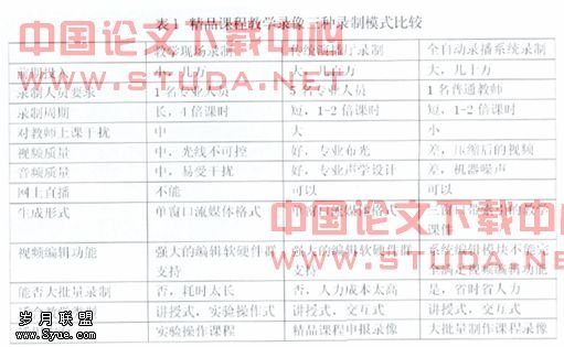 2 精品课程教学录像制作模式的比较 2.1 教学现场录制模式