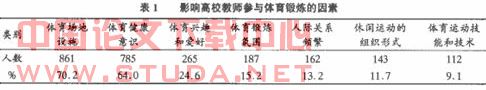 2. 5影响高校教师参与体育锻炼的因素