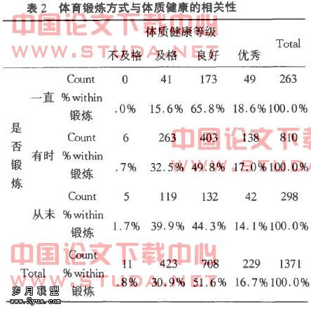 5大学生锻炼方式与体质健康的相关性研究结果与分析