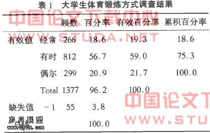 3大学生体育锻炼方式调查结果与分析
