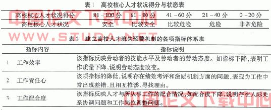 随着各高校规模的不断扩大及高校间竞争的不断加剧,一个严峻的问题摆在了各高校的面前——高校教师中的核心人才正在不断流失。核心人才的流失,不仅影响到高校的正常运行,造成教师队伍的不稳定,而且还会造成大量的纠纷,严重影响高校的生存和发展。特别是现在的人才流动经常是以团队方式进行,一个人的离职可能会产生连锁反应:一是高校生存和发展的关键是高校教师中核心人才在教师队伍中所起到的核心作用,如果处理不当,容易形成“墙倒众人推”的人才危机;二是高校的信誉是高校在长期的运行过程中形成的,教师中大量核心人才流失会给高校整体形象和名声带来损害,产生高校的信誉危机;三是高校教师中核心人才流失会造成重要岗位的空缺,直接影响高校教学管理的正常运行,会使高校产生运行危机。因此,在高校中构建核心人才流失的预警机制,预测并防范核心人才离职行为的发生,做到未雨绸缪、防患于未然是极为有意义的。