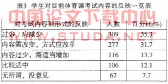 3.2.2学生对目前体育课考试内容、形式的反映