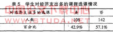 从表5中可以看到42.9%的学生会因为要花钱丽放弃了自己喜欢的课程。在课程过程中需购置器材或服装时持“一般”态度的人数占了总人数的57.1%,这与学生的经济水平和消费意识有很大关系。在有限的经济能力的前提下,前两项是他们认为的理应的消费支出,其次才是进行娱乐休闲的消费。