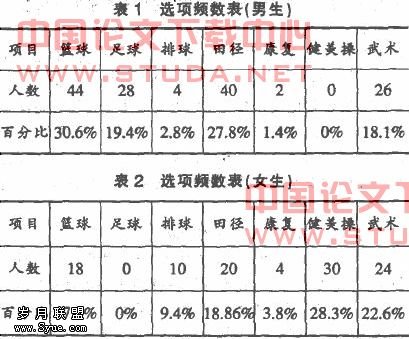 本文就公共体育选修课选课情况设计问卷。主要对我校大一、二、三学生和任课老师进行调查,发放问卷260份,有效回收255份,回收率为98%,有效卷250份,有效回收率96%。